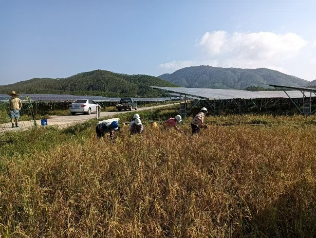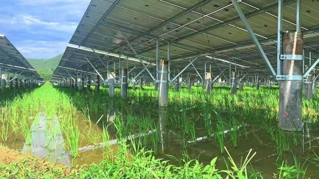以ag真人国际清洁能源华南分公司广东省东源县骆湖镇100MW光伏项目为例,该项目针对土地涝洼导致农作物收成不高的问题,科学选择适宜的农作物品种与光伏系统相结合,配套精准育种、优化种植模式及现代化治理机制,实现“板上光伏发电、板下种植农作物”的高效协同生长。通过合理结构光伏阵列,确保农作物在光伏板下仍能获得富足的散射光,同时借助水稻田的湿情况可坚持光伏板的温度,提升发电效率。别的,该模式还能减少农田水分蒸发,节约水资源,真正实现光伏与农业生产的互促共赢。项目投产后年发电量抵达0.86亿度,相当于节约标煤2.83万吨,减少二氧化碳排放量8.63万吨,同时稻谷产量也迎来丰收,告竣土地利用率和经济效益的双重优化。该项目的乐成实践,为农光互补模式的推广提供了可复制、可推广的经验,助力农业现代化和能源绿色转型的深度融合。